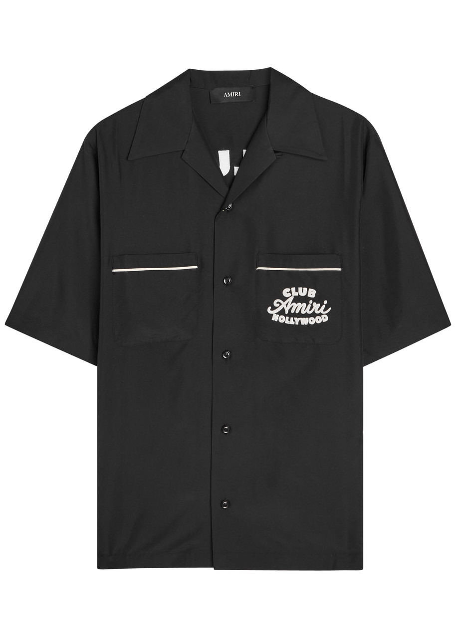 Info & Care Amiri modal-blend shirt Camp collar, front patch pockets with contrasting trims, designer embroidery at chest and back Button fastenings through front 60% modal, 40% polyester Dry clean Coordinating item available; Size & Fit Length shoulder to hem: 27 inches/ 68.5cm Midweight Relaxed fit Model is 6'1"/ 185cm, chest size 38.5 inches and wears a size medium