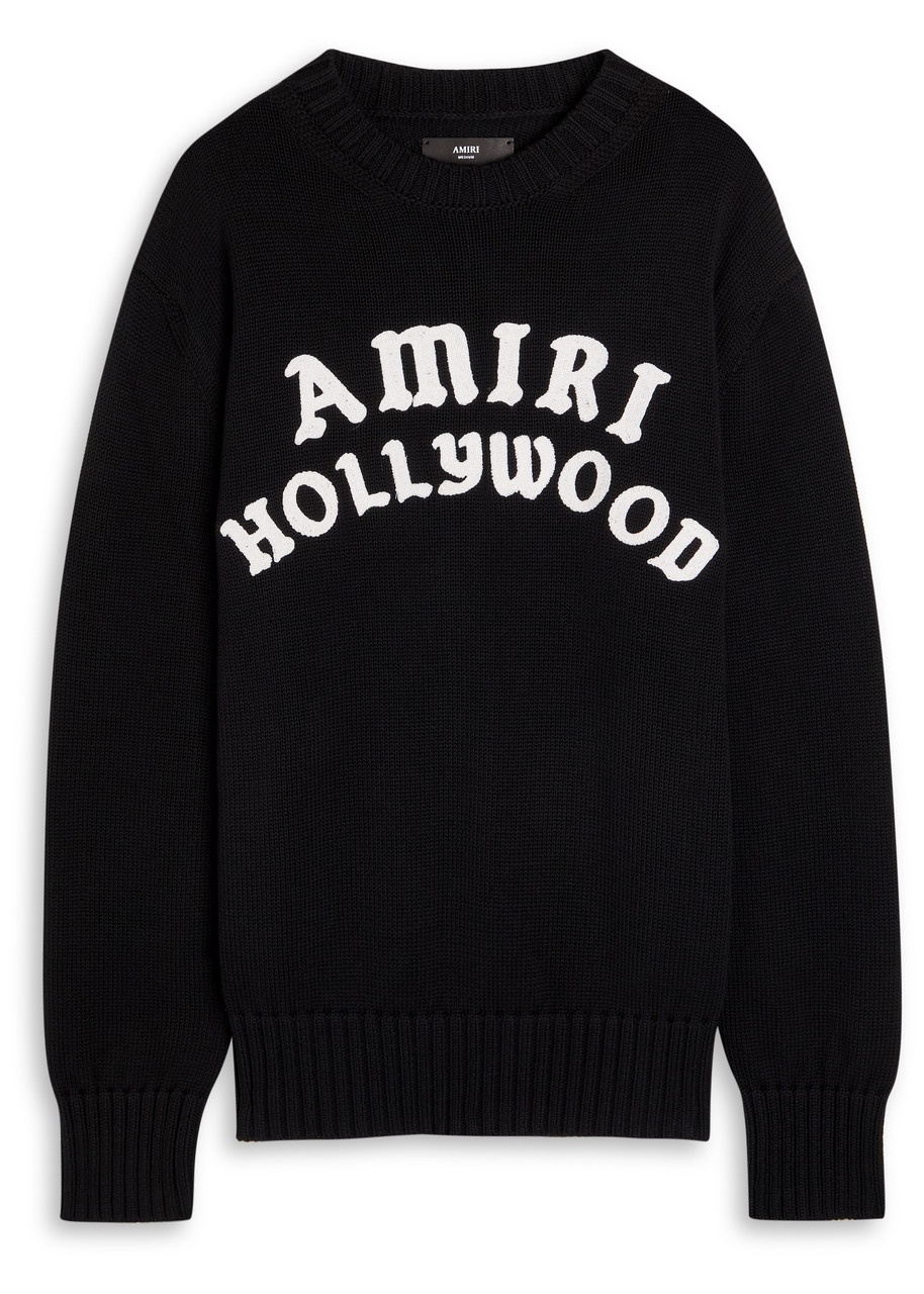 Info & Care Amiri knit jumper; Crew-neck, designer embroidery across front, ribbed trims Slips on 100% cotton Spot clean; Size & Fit Length shoulder to hem: 28 inches/ 71cm Midweight Regular fit Model is 6'2"/ 189cm, chest size 38 inches and wears a size medium