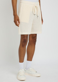 Info & Care Amiri;cotton crochet shorts Drawstring waistband,;logo embroidery at hem, ribbed trims Pull on 100% cotton Spot clean Size & Fit Length waist to hem: 19.5 inches/ 49.5cm Midweight Relaxed fit Model is 6'2"/ 188cm and wears a size medium