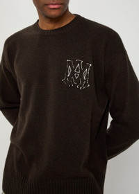 Info & Care Amiri wool jumper Embroidered logo applique at chest and back, crew-neck, dropped shoulders, ribbed trims; Slips on; 100% wool; Hand wash; Size & Fit Length shoulder to hem: 28 inches/ 71.5cm; Midweight Relaxed fit Model is 6'2"/ 188cm, chest size 38 inches and wears a size medium;