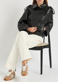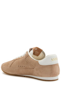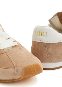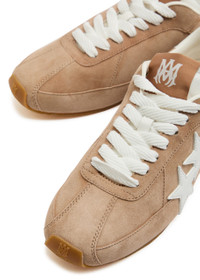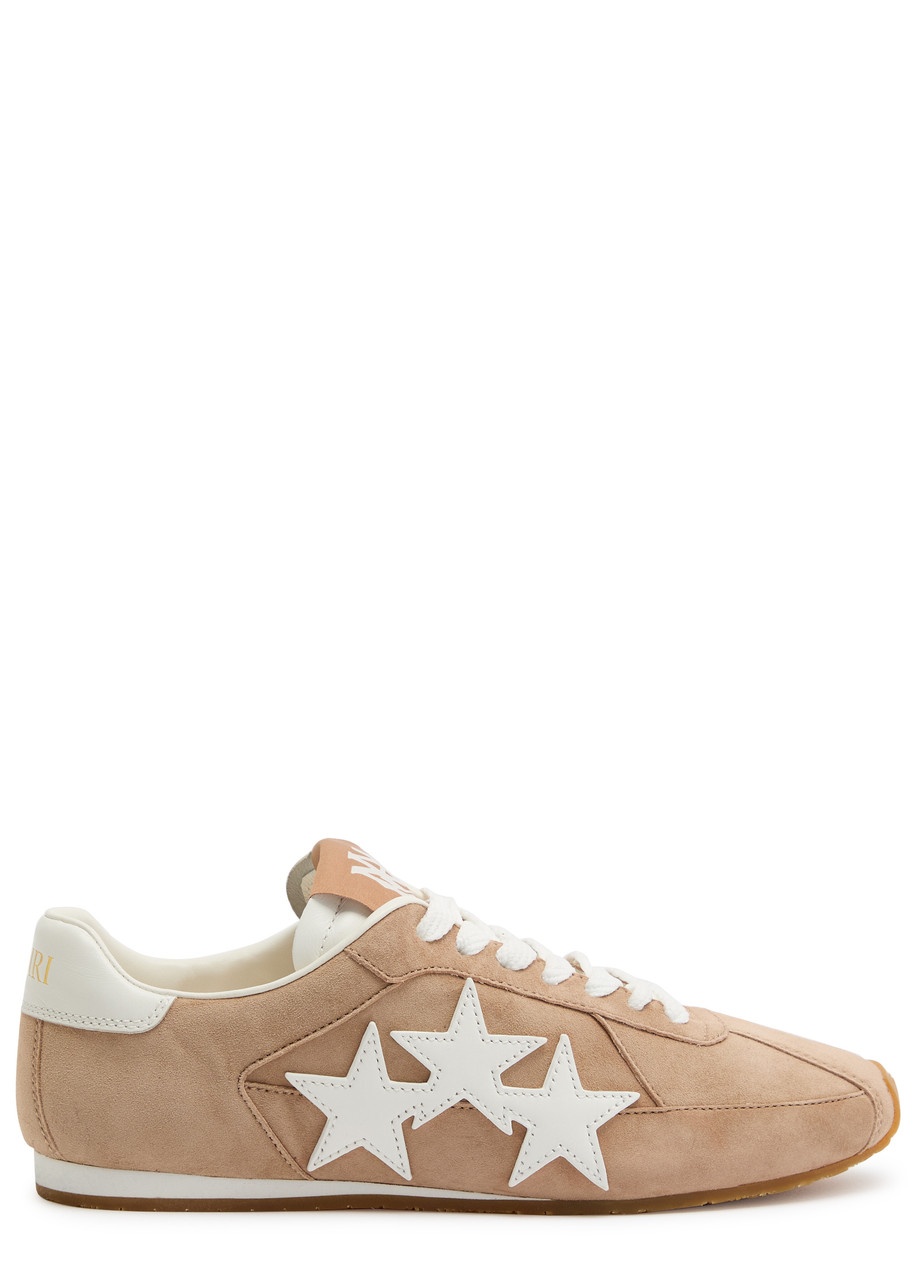 Info & Care Amiri suede sneakers Designer plaque at padded leather tongue, leather star appliques at side, panelled, perforated star details, designer-stamped leather heel panel, logo-embossed gum toe panel, gum sole, round toe Lace-up front Size & Fit Only available in full sizes, go up to the nearest whole size if you take a half size;
