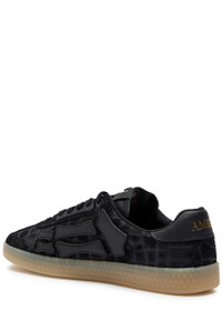Info & Care Amiri suede sneakers Crocodile-effect, logo plaque at padded leather tongue, leather bone appliques at sides, designer-stamped leather heel panel, logo-monogrammed rubber midsole, rubber sole, round toe Lace-up front Size & Fit Only available in full sizes, go up to the nearest whole size if you take a half size;