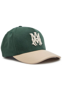 Info & Care Amiri;canvas cap Colour blocked, logo;embroidery, designer plaques at back, concentric stitching at leather brim, embroidered eyelets, partially lined Adjustable snapback fastening; Fabric 1: 100% cotton; fabric 2: 100%;leather; lining: viscose Spot clean; Size & Fit Brim depth: 7cm