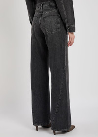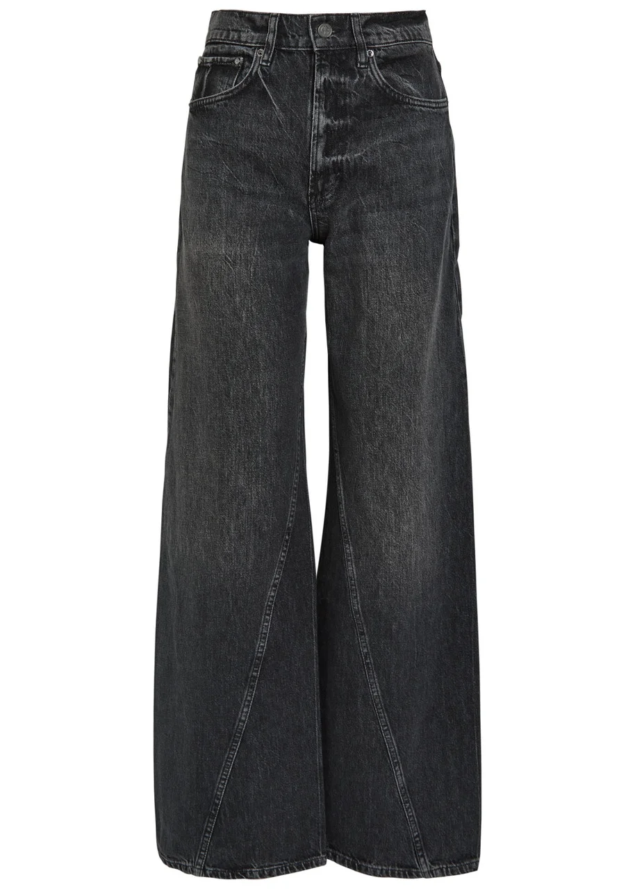 Info & Care Anine Bing denim jeans High-rise fit, wide-leg cut, belt loops, five pockets, twisted seams, designer plaque at back, whiskered, washed and faded finish Partially concealed button fastenings at front Designer wash: Arctic Night 100% cotton Machine wash cold inside out to avoid colour transfer Size & Fit Front rise: 12 inches/ 30.5cm Inside leg length: 32 inches/ 81.5cm Midweight Model is 5'9"/ 175cm and wears a size W27