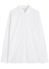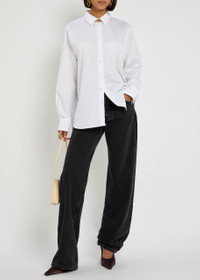 Info & Care Anine Bing cotton-poplin shirt Pleats at adjustable button-fastening cuffs, curved hem Button fastenings through front 100% cotton Machine wash Size & Fit Length shoulder to hem: 27.5 inches/ 70cm Midweight Loose fit Model is 5'9"/ 175cm and wears a size small