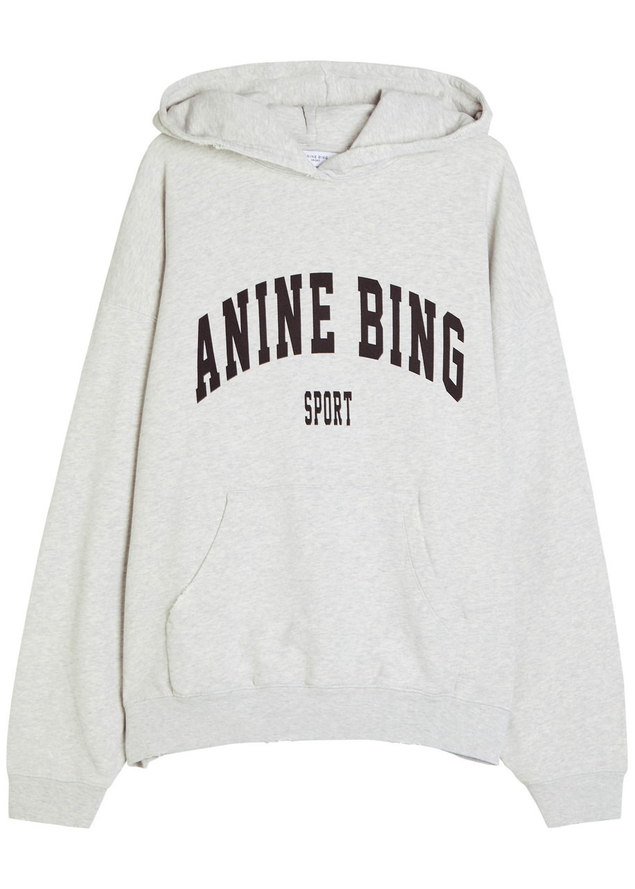 Info & Care Anine Bing cotton sweatshirt Hood, dropped shoulders, logo print at front, pouch pocket, ribbed trims, slightly distressed finish Slips on 100% cotton Machine wash; Size & Fit Length shoulder to hem: 26 inches/ 66cm Midweight Loose, relaxed fit Model is 5'9"/ 175cm and wears a size small
