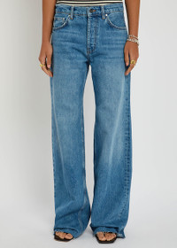 Info & Care Anine Bing denim jeans; High-rise fit, relaxed wide-leg cut, belt loops, five pockets, designer plaque at back, distressed and washed finish Partially concealed button fastenings at front; 50% cotton, 50% organic cotton Machine wash cold inside out to avoid colour transfer Size & Fit Front rise: 11 inches/ 28cm Inside leg length: 34 inches/ 86.5cm Midweight Model is 5'9"/ 175cm and wears a size;W27