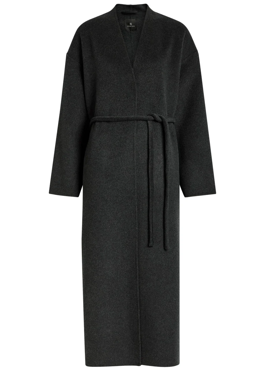 Anine Bing Hunter Belted Wool and Cashmere-blend Coat