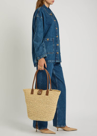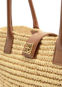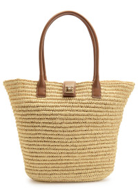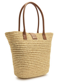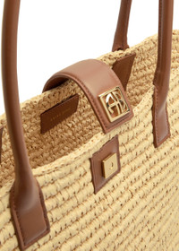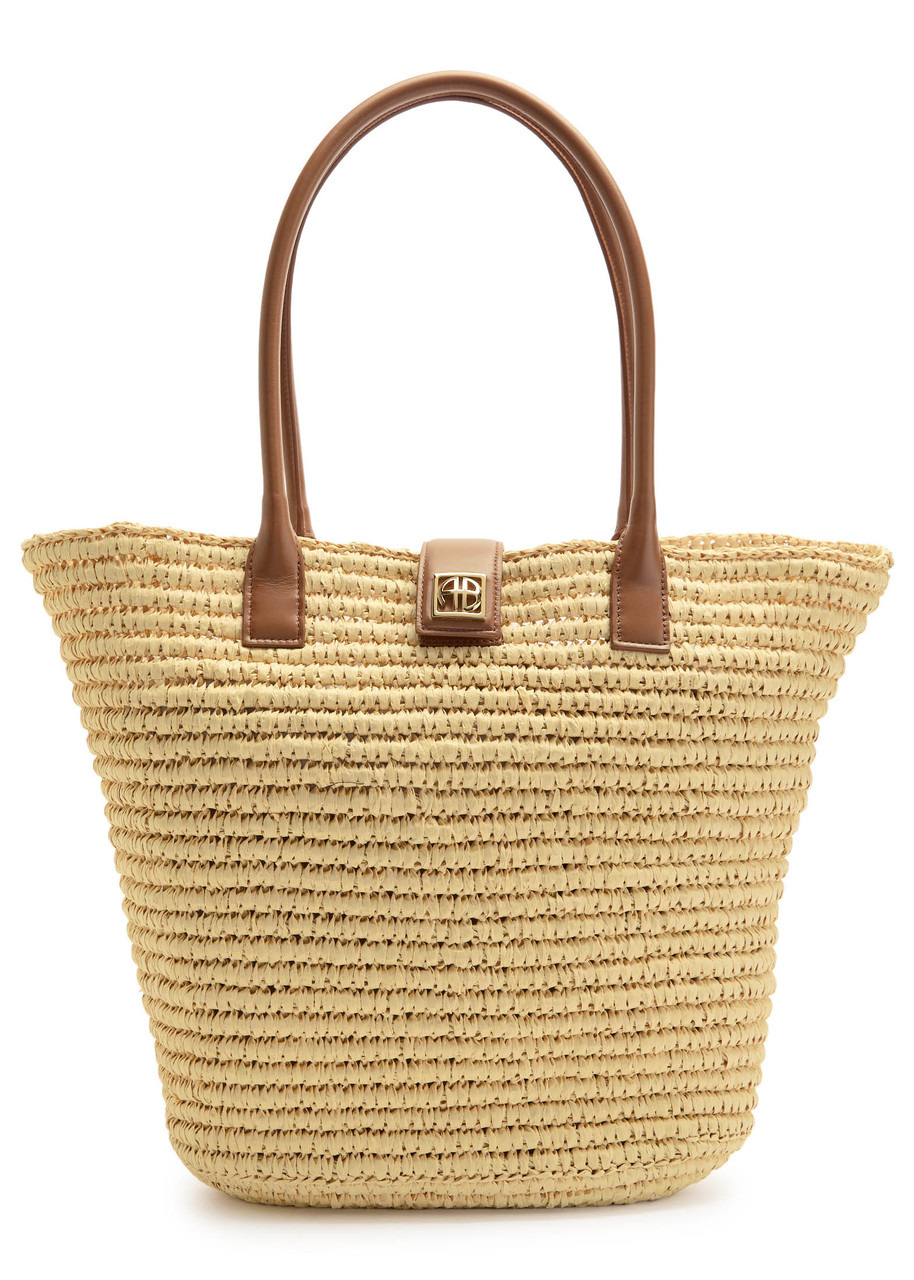 Info & Care Annie Bing;woven seagrass raffia tote Two leather shoulder straps, designer plaque at leather tab, designer-engraved hardware Magnetic press-stud fastening at open top Size & Fit Width: 1: 17.5 inches/ 44.5cm; 2: 11 inches/ 28cm Height: 12.75 inches/ 32.5cm Depth: 3 inches/ 7.5cm Shoulder strap drop: 9 inches/ 23cm