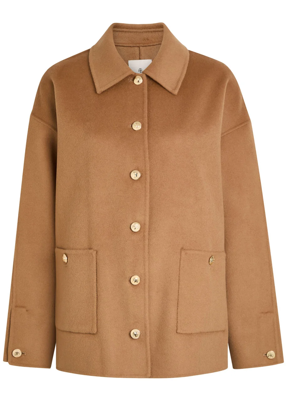 Info & Care Anine Bing wool and cashmere-blend jacket Dropped shoulders, button-fastening cuffs and front patch pockets, side splits at hem Button fastenings through front 90% wool, 10% cashmere Dry clean Size & Fit Length shoulder to hem: 27 inches/ 68.5cm Midweight Relaxed fit Model is 5'10"/ 178cm and wears a size small