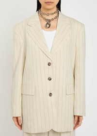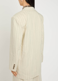 Info & Care Anine Bing woven blazer Pinstriped, notched lapels, padded shoulders, button-fastening cuffs, faux slit pocket at chest, two flap pockets at front, back vent, internal slip pocket, fully lined; Button fastenings at front; 91% viscose, 8% polyester, 1% elastane; lining: 52% viscose, 48% polyester Dry clean; Coordinating item available; Size & Fit Length shoulder to hem: 30.5 inches/ 77.5cm Midweight Designed to be worn slightly oversized fit, cut for a loose fit Model is 5'10"/ 178cm and wears a size small