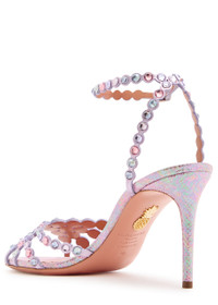Aquazzura Tequila 85 Crystal-embellished Metallic Leather Sandals