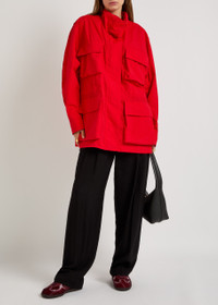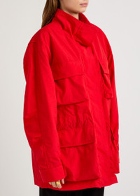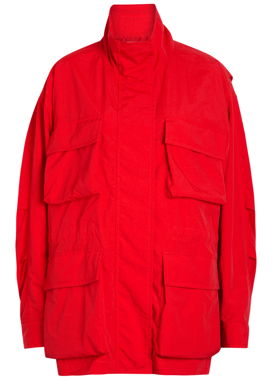 Info & Care Armarium nylon jacket High-neck, darts at arms, adjustable press-stud fastening cuffs, four front flap pokcets, side slip pockets, internal toggle fastenings at waist Concealed zip and press-stud fastenings through front 100% nylon Dry clean Size & Fit Length shoulder to hem: 31 inches/ 79cm Midweight; Relaxed;fit Model is 5'9"/ 175cm and wears a size IT40