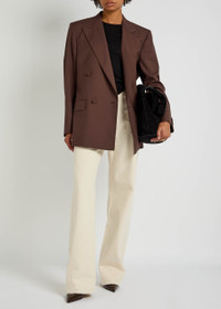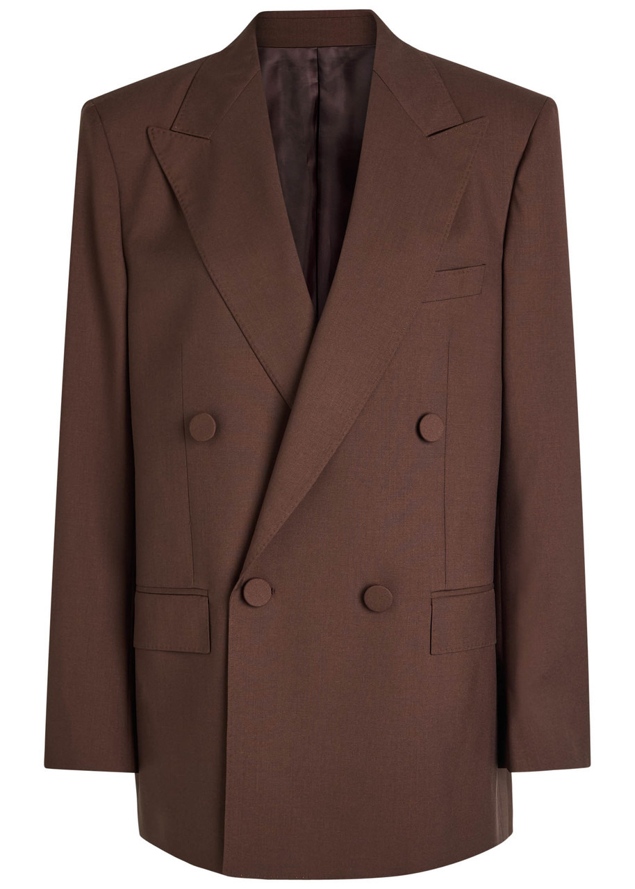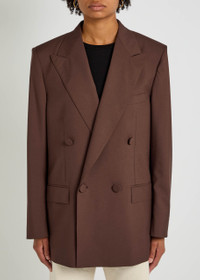 Info & Care armarium wool blazer Peaked lapels, padded shoulders, faux button-fastening cuffs, chest slit pocket, darts through waist, two flap front pockets, two back vents, two internal slip pockets, fully lined Double-breasted button fastenings at front; 100% wool; lining: 100%;cupro Dry clean Size & Fit Length shoulder to hem: 31 inches/ 79cm Midweight Designed to worn oversized, cut for loose fit Model is 5'9"/ 175cm and wears a size;IT40