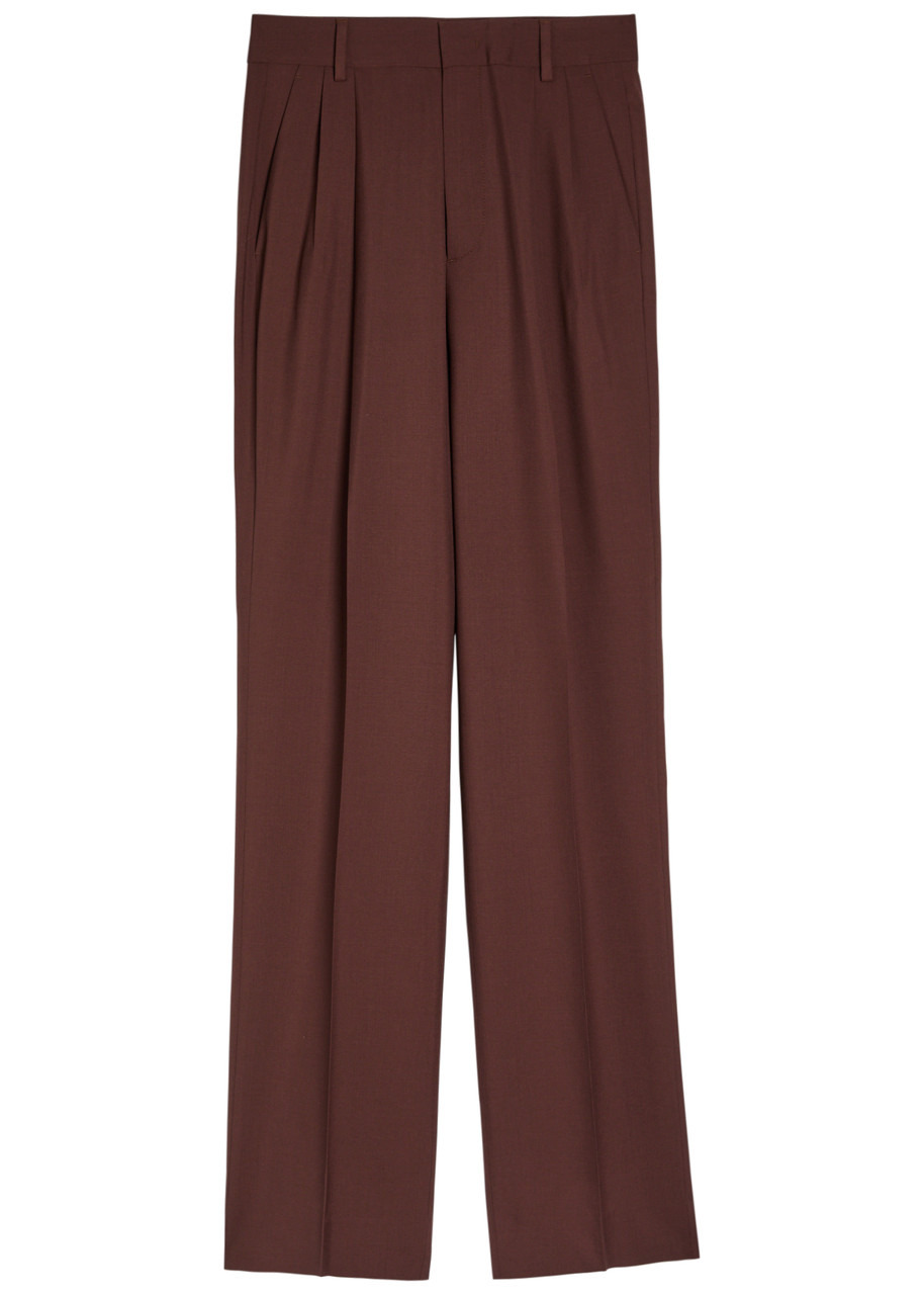 Info & Care Armarium wool trousers Belt loops, pleats at waist, side slip pockets, pressed crease through legs, two back slit pockets Concealed zip, hook and button fastenings at front 100% wool Dry clean Size & Fit Inside leg length: 32.5 inches/ 82.5cm Midweight Straight-leg cut Model is 5'9"/ 175cm and wears a size IT40
