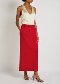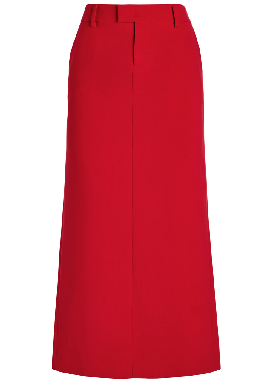 Info & Care armarium wool-blend skirt Belt loops, side slant pockets, darted back, back slit pockets, back vent Concealed hook, button and zip fastening at;front 95%;virgin wool, 4%;elastane, 1% polyamide Dry clean Coordinating items available Size & Fit Length waist to hem: 36 inches/ 91.5cm Midweight Slim fit Straight-cut Model is 5'9"/ 175cm and wears a size;IT40