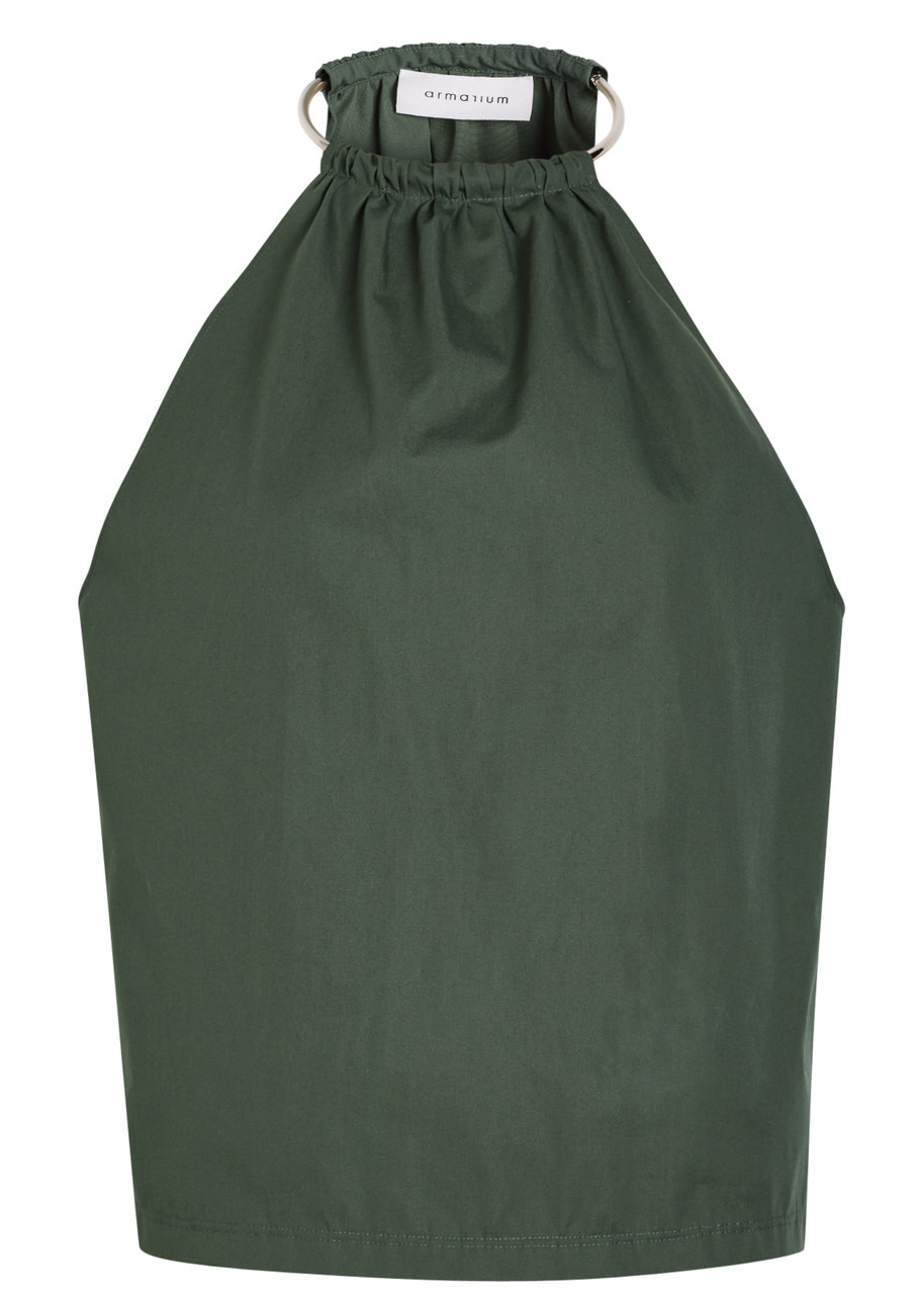 Info & Care Armarium cotton top Gathered halterneck with structured metal ring detail, curved hem Clasp fastening at neck 100% cotton Machine wash Size & Fit Length shoulder to hem: 21 inches/ 53.5cm Midweight; Slightly relaxed fit Model is 5'9"/ 175cm and wears a size IT40