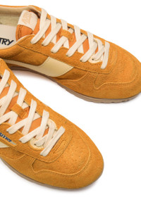 Info & Care Autry brushed suede sneakers Designer plaque at padded nylon tongue and side, panelled, metallic designer-stamped leather heel panel, padded ankle, logo-embossed rubber midsole, gripped rubber sole, round toe Lace-up front Size & Fit Only available in full sizes, go up to the nearest whole size if you take a half size