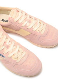 Info & Care Autry brushed suede sneakers Designer plaque at padded nylon tongue and side, panelled, metallic designer-stamped leather heel panel, padded ankle, logo-embossed rubber midsole, gripped rubber sole, round toe Lace-up front Size & Fit Only available in full sizes, go up to the nearest whole size if you take a half size