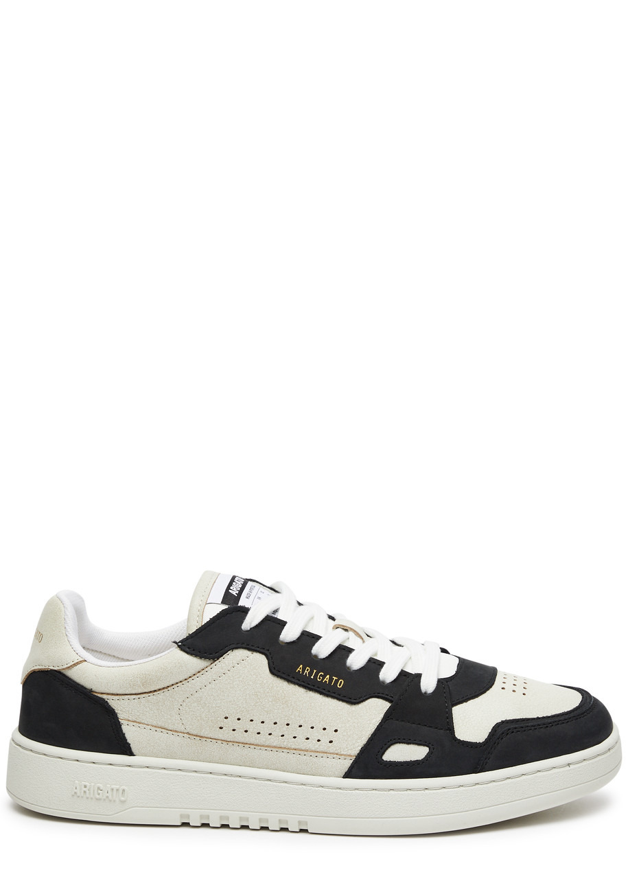 INFO & CARE - Axel Arigato leather sneakers - Designer plaque at padded canvas tongue, nubuck panels, designer stamp at side, perforated details, padded heel, designer-stamped heel panel, embossed logo at textured midsole, rubber sole, round toe - Lace-up front SIZE & FIT - Only available in full sizes, go up to the nearest whole size if you take a half size