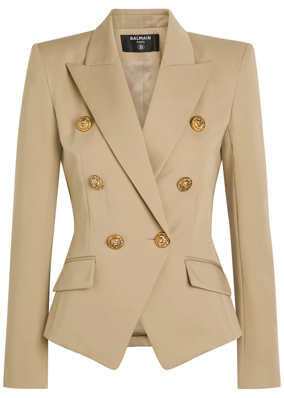 Info & Care Balmain jacket Peaked lapels, padded shoulders, button-fastening cuffs, two slit pockets at front, internal button-fastening slit pocket, fully lined Button-fastening through front 52% viscose, 48% cotton Specialist clean Size & Fit Length shoulder to hem: 25.5 inches/ 65cm Midweight Structured fit, ccinched at waist Tailored style Model is 5'10"/ 178cm and wears a size 8