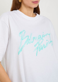 Info & Care Balmain cotton T-shirt 'Balmain Paris' print at front, ribbed crew-neck; Slips on 100% cotton Machine wash Size & Fit Length shoulder to hem: 27 inches/ 68.5cm Midweight Relaxed fit Model is 5'9"/ 175cm and wears a size small