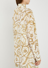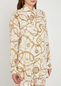 Info & Care Balmain silk shirt; Printed, button-fastening cuffs, curved hem Partially concealed button fastenings through front 100% silk Dry clean Size & Fit Length shoulder to hem: 28 inches/ 71cm Midweight Loose fit Model is 5'9"/ 175cm and wears a size;FR38