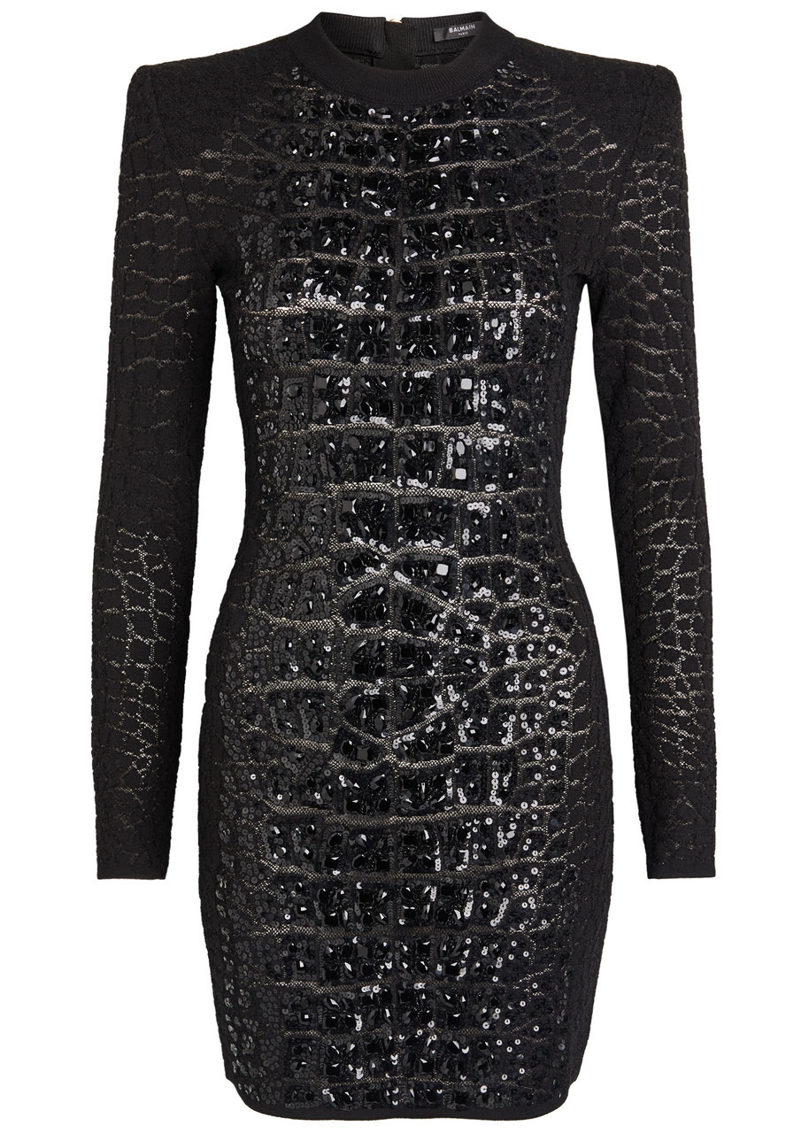 Balmain Sequin-embellished Crocodile-knit Mini Dress