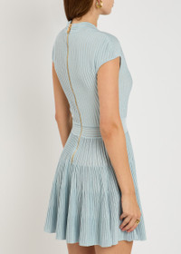 Short-Sleeve Flechage Knit Flare Mini Dress