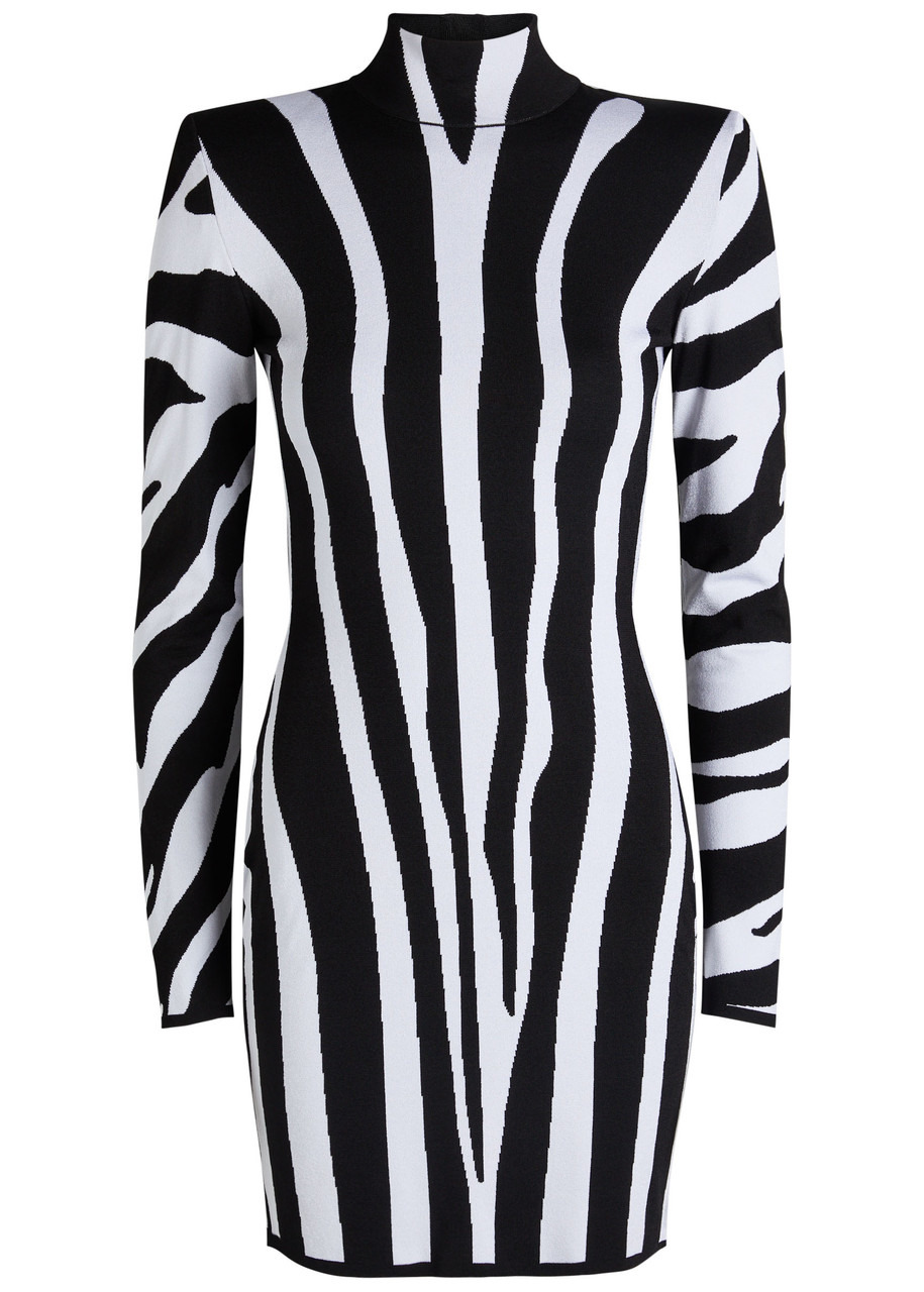 Balmain Zebra-intarsia Knit Mini Dress