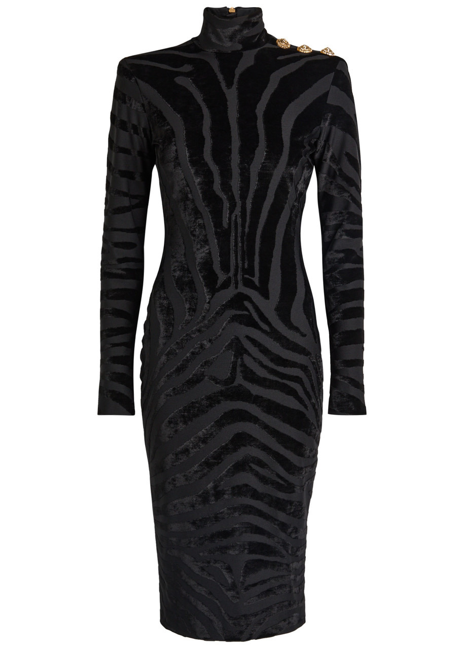 Balmain Zebra-jacquard Velvet and Woven Bodycon Dress