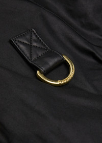 Info & Care Barbour waxed cotton jacket Hook-fastening corduroy collar with detachable drawstring hood, raglan sleeves, tartan lining at cuffs, D-ring at chest, press-stud fastening front flap pockets, embroidered logo, designer hardware, internal zip-fastening pocket, fully lined Partially concealed zip and press-stud fastenings through front 100% cotton (waxed); lining: 65% polyester, 35% cotton; sleeve lining and collar: 100% cotton Spot clean Size & Fit Length shoulder to hem: 23 inches/ 58.5cm Midweight Relaxed, boxy fit Model is 5'9"/ 175cm and wears a size;UK8