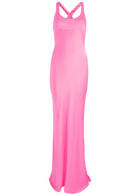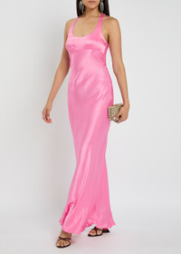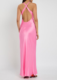 Info & Care Bec & Bridge satin dress Scoop-neck, cross-over shoulder straps at low back Concealed zip fastening at back 100% viscose Dry clean Size & Fit Length shoulder to hem: 63 inches/ 160cm Midweight Slim fit Model is 5'10"/ 178cm and wears a size UK8