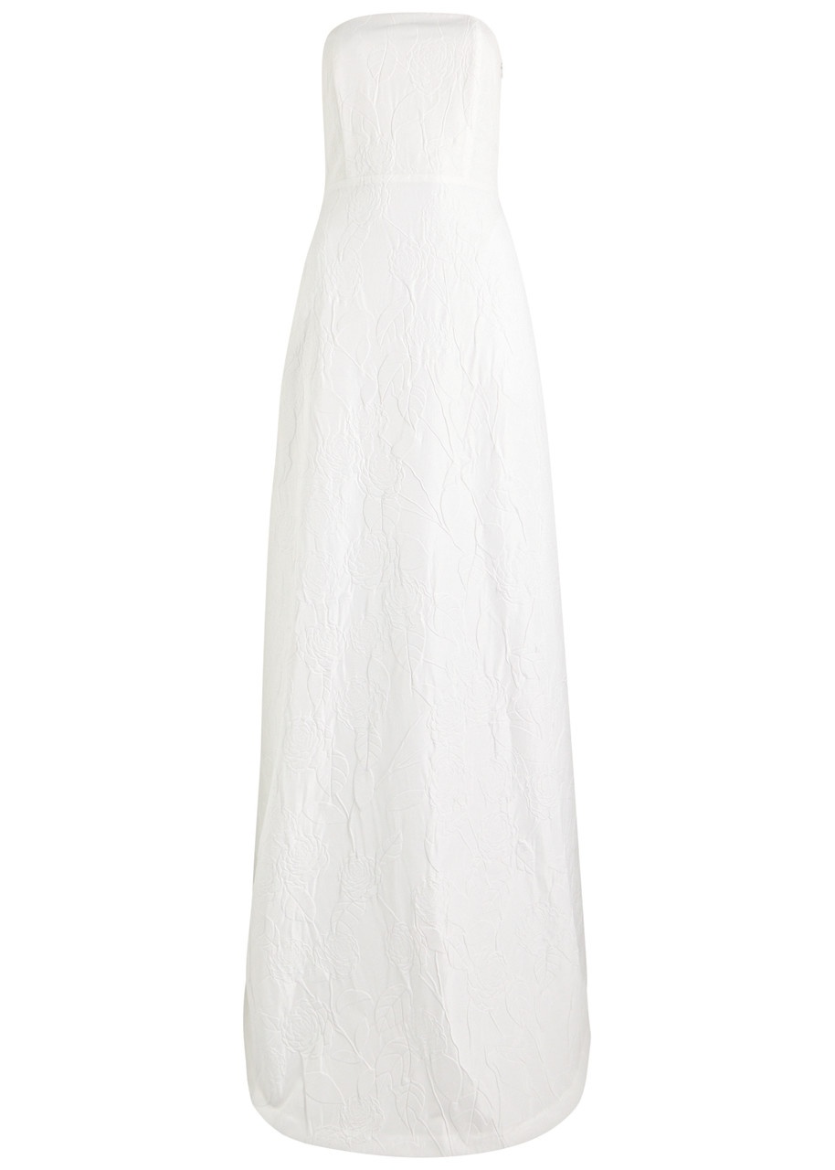 Info & Care Bernadette taffeta dress Floral jacquard, strapless, panelled bust, fully lined Concealed hook and zip fastening at side; 100% polyester; lining: 100% cotton Dry clean Size & Fit Length shoulder to hem: 56.5 inches/ 143.5cm Midweight Slim fit, loose skirt Model is 5'10"/ 178cm and wears a size;FR36