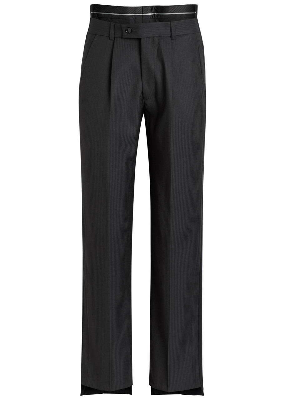 Info & Care Bettter wool-blend;trousers Belt loops, pleats at waist, side slip pockets, pressed crease through legs, subtle striped jacquard front panels, button-fastening back slit pocket Partially concealed zip, hook and button fastenings;at front Fabric 1: 50% wool, 25% viscose, 25% polyester; fabric 2: 65% wool, 20% viscose, 15% polyester; lining: 100% viscose Dry clean Size & Fit Inside leg length: 28 inches/ 71cm Midweight; Straight-leg cut Model is 5'9"/ 175cm and wears a size small