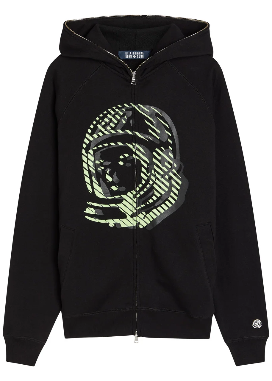 Info & Care Billionaire Boys Club cotton sweatshirt; Rubberised signature Astro print at;front, zip-fastening hood, signature Astro applique at cuff, side slip pockets, logo print at back neck, ribbed trims Two-way zip fastening through front 100% cotton; Machine wash; Size & Fit Length shoulder to hem: 27 inches/ 68.5cm Midweight Boxy fit Model is 6'2"/ 188cm, chest size 38 inches and wears a size medium