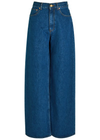 Info & Care Blaze Milano;denim jeans High-rise fit, wide-leg cut, belt loops, five pockets, designer tag, designer plaque at back,;logo embroidery at back, faded finish Partially concealed zip and sculpted button fastening at front 100% cotton Machine wash inside out to avoid colour transfer Size & Fit Front rise: 11.5 inches/ 29.5cm Inside leg length: 33 inches/ 84cm Midweight Model is 5'10"/ 178cm and wears a size;1