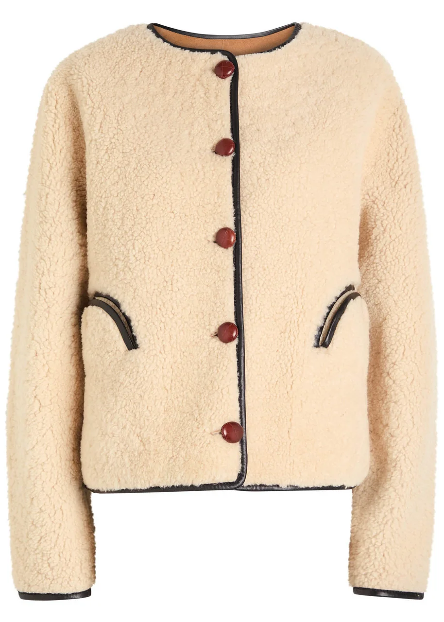 Info & Care Blaze Milano sheepskin;jacket Reversible, round-neck, button-fastening sculpted front pockets, piped leather trims, sculpted hardware, two internal button-fastening pockets, suede reverse Button fastenings through front 100% sheepskin Specialist clean Size & Fit Length shoulder to hem: 23 inches/ 58.5cm Midweight Boxy, oversized fit Model is 5'9"/ 175cm and wears a size 1
