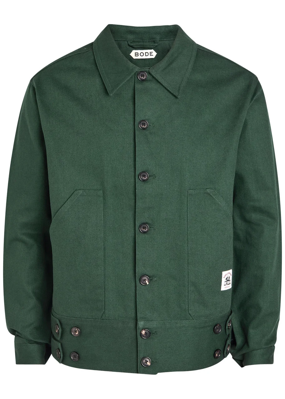 Info & Care Bode canvas jacket Button-fastening cuffs, side slip pockets, designer applique, adjustable button-fastening tabs at hem; Button fastenings through front 100% cotton Machine wash Size & Fit Length shoulder to hem: 25 inches/ 63.5cm Midweight Boxy fit Model is 6'1"/ 185cm, chest size 38.5 inches and wears a size medium