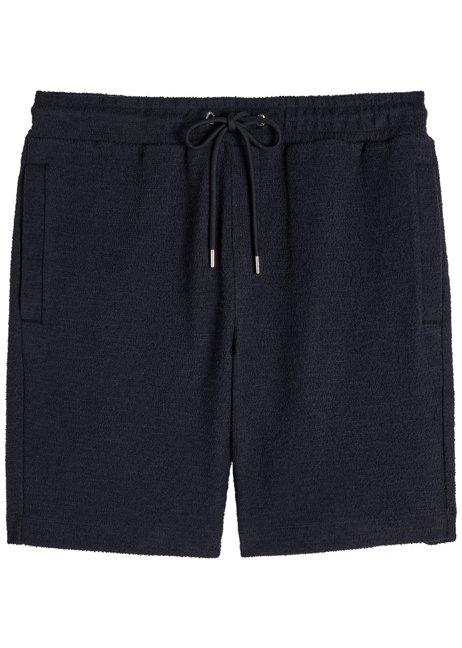 Info & Care Boss;boucle;shorts Elasticated drawstring waist,;two side slip pockets, designer plaque at back, back slit pocket, jersey lining Pull on 100% cotton Machine wash Size & Fit Length waist to hem: 20 inches/ 51cm Midweight Regular fit Model is 6'2"/ 188cm and wears a size medium