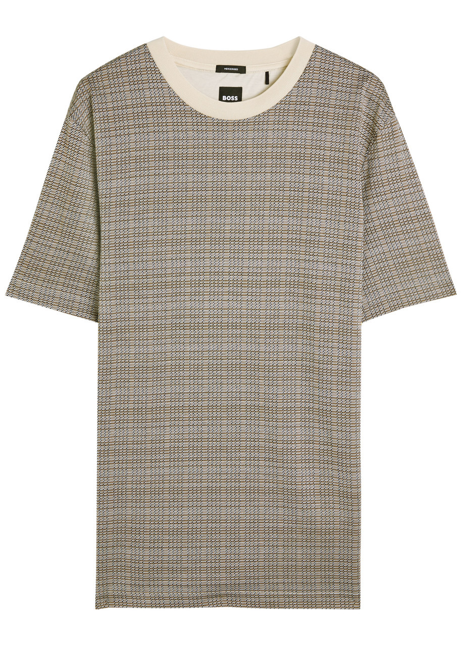 MERCERIZED-COTTON T-SHIRT WITH GRID PATTERN