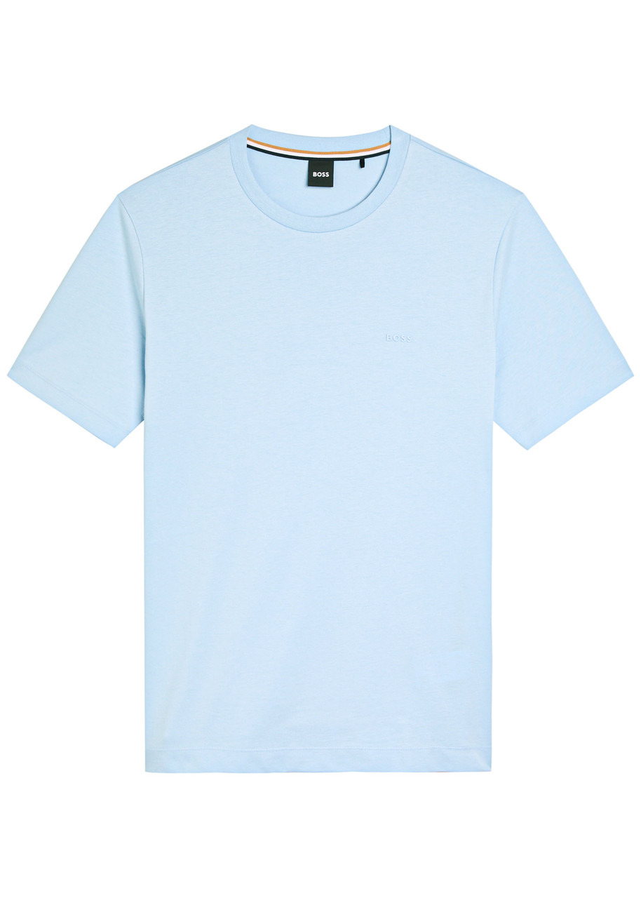 Info & Care Boss jersey T-shirt Ribbed crew-neck, rubberised designer stamp at chest, designer tag at side Slips on 100% cotton Machine wash Size & Fit Length shoulder to hem: 29 inches/ 73.5cm Midweight Regular fit Model is 6'1"/ 185cm, chest size 36 inches and wears a size medium
