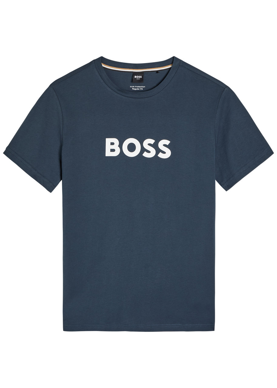 Info & Care Boss cotton T-shirt; Ribbed crew-neck,;logo print at chest Slips on; 100% cotton; Machine wash Size & Fit Length shoulder to hem: 28 inches/ 71cm Midweight Regular fit Model is 6'2"/ 188cm, chest size 38 inches and wears a size medium