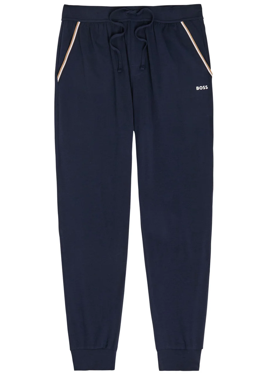 Info & Care Boss stretch-cotton sweatpants Elasticated drawstring waistband, faux fly, side slant pockets with signature stripe trims, designer stamp Pull on 95% cotton, 5%;elastane Machine wash Size & Fit Inside leg length: 29.5 inches/ 75cm Midweight Relaxed tapered-leg cut Model is 6'1"/ 185cm and wears a size medium