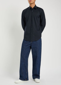 Info & Care Boss stretch-cotton shirt Woven design, adjustable button-fastening cuffs, curved hem, textured Button fastenings through front 96% cotton, 4% elastane; Machine wash Size & Fit Length shoulder to hem: 28 inches/ 71cm Midweight Slim fit Model is 6'1"/ 185cm, chest size 36 inches and wears a size medium