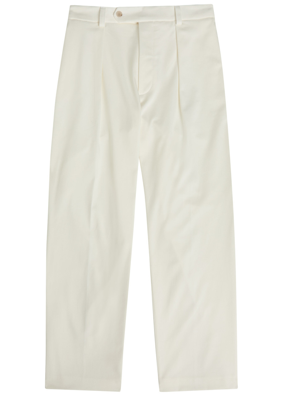 Info & Care Boss X David Beckham stretch-cotton trousers Partially elasticated waist, belt loops, pleats at front, side slip pockets, two slit pockets at back Partially concealed button and zip fastenings at front 98% cotton, 2% elastane Dry clean Size & Fit Inside leg length: 31 inches/ 78.5cm Midweight Straight-leg cut Model is 6'1"/ 186cm and wears a size IT48