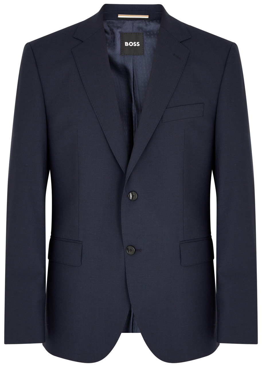 INFO & CARE - Boss stretch-wool blazer - Notched lapels, padded shoulders, faux button fastenings at cuffs, faux chest slit pocket, two flap front pockets, two back vents, fully lined - Button fastenings through front - 95% virgin wool, 5% elastane; lining: 65% viscose, 35% polyester - Dry clean SIZE & FIT - Length shoulder to hem: 29.5 inches/ 75cm - Midweight - Regular fit