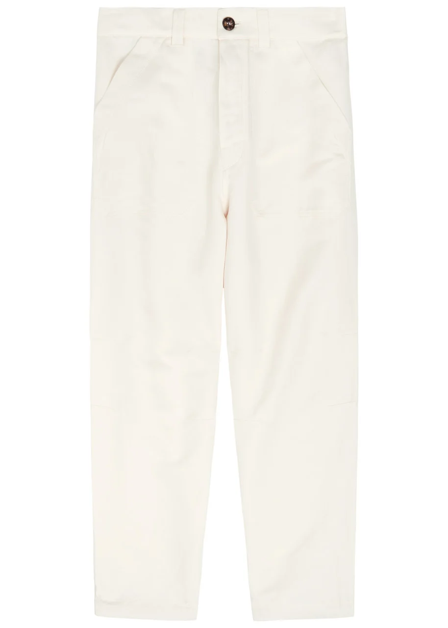 Info & Care Brunello Cucinelli linen and cotton-blend trousers Partially elasticated waist, side slip pockets, button fastening back patch pockets Partially concealed button fastenings through front 56% linen, 44% cotton Dry clean Size & Fit Inside leg length: 27 inches/ 68.5cm Midweight Relaxed fit, cropped Model is 6'1"/ 185cm and wears a size;IT48