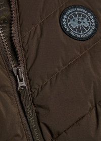 Info & Care Canada Goose shell gilet Canada Goose Thermal Index 1 Designed for temperatures between 5°C and -5°C Padded, detachable hood at high-neck, embroidered designer applique at chest, zip-fastening side pockets, fully lined Zip fastening through front 100% polyamide; lining: 100% polyester; fill: 90% duck down, 10% duck feather Machine wash Size & Fit Length shoulder to hem: 23.5 inches/ 59.5cm Midweight Regular fit Model is 5'9"/ 175cm and wears a size small
