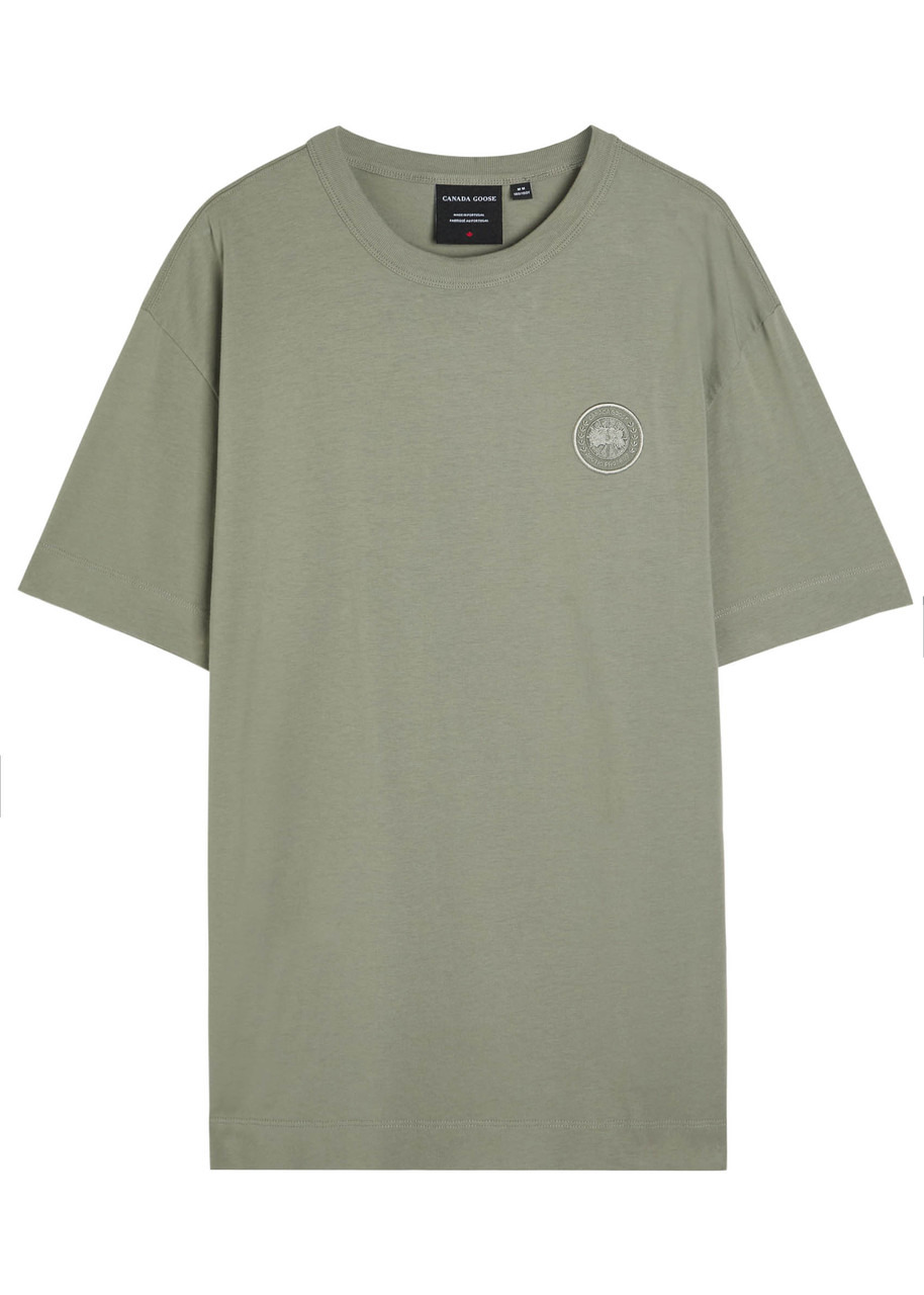 Info & Care Canada Goose cotton t-shirt Ribbed crew-neck, embroidered designer plaque at chest Slips on 100% cotton Machine wash Size & Fit Length shoulder to hem: 28 inches/ 71cm Midweight Relaxed fit Model is 6'1"/ 185cm, chest size 38 inches and wears a size medium;